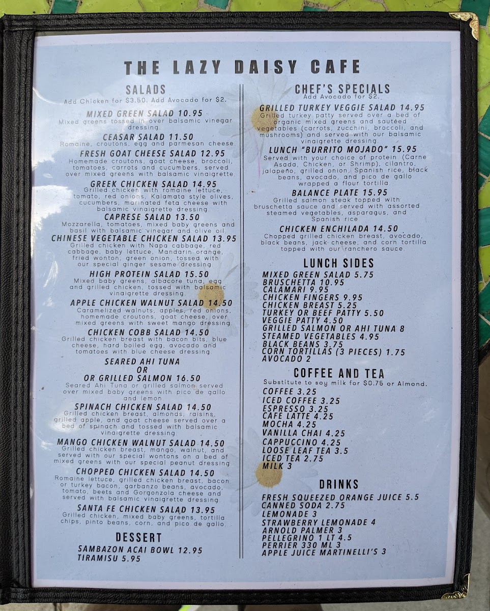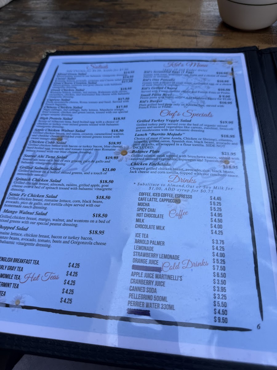Loose leaf tea with options to customize: whipped cream, various syrups, extra shot, iced, or milk alternatives.